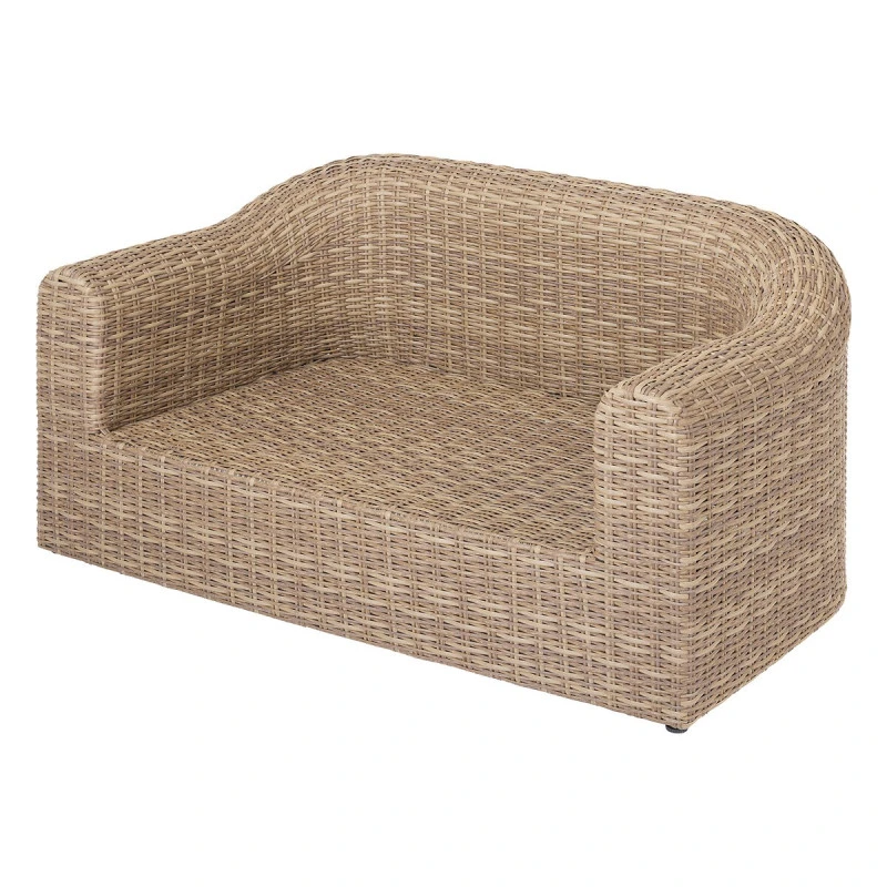 Craquez pour le charme de la résine tressée à l’extérieur avec ce canapé 2 places de la collection Moorea en coloris savana de la marque Hespéride.