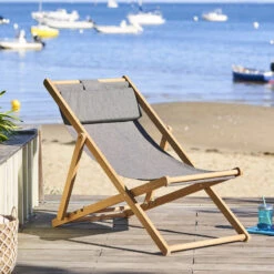 Profitez du soleil avec la chilienne en bois d’eucalyptus Mahini coloris carbone de la marque HespĂ©ride.