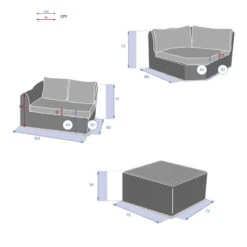 + 1 angle (113x113xH73 cm) + 1 table (72x72xH36 cm).