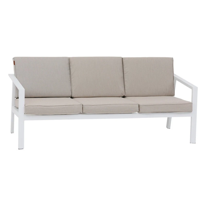 Appréciez le confort et le style du salon de jardin 5 places Pavane de la marque Hespéride en coloris beige ficelle et blanc.