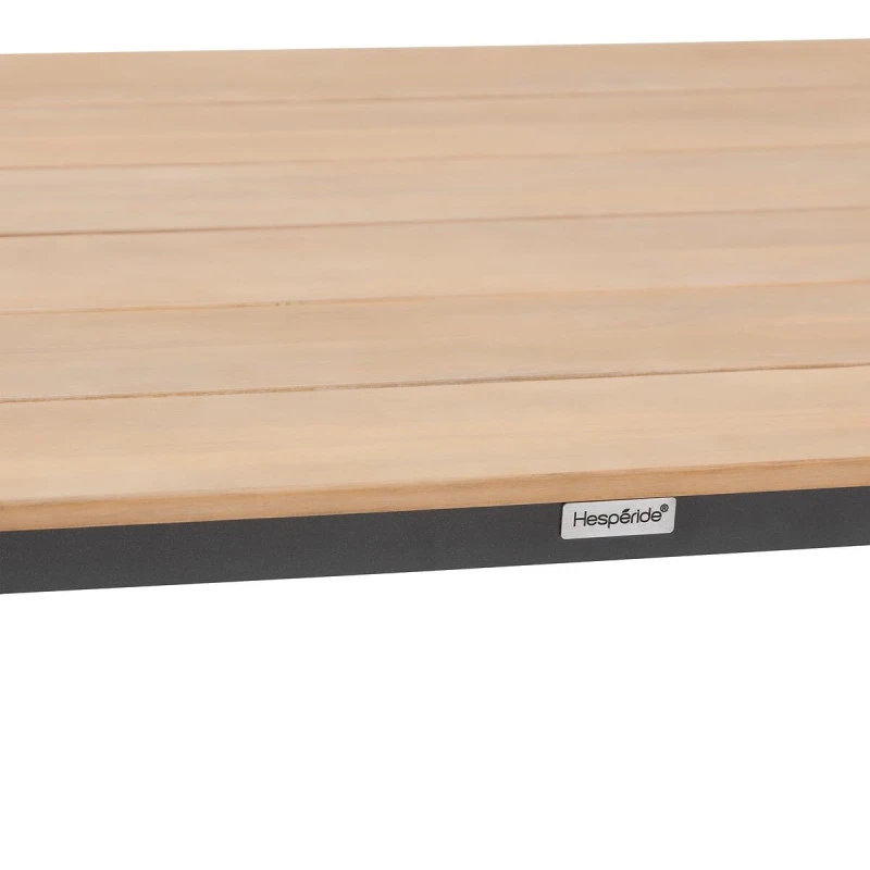 Ses coussins (dĂ©houssables) sont en polyester 230 g/m² traitĂ©s dĂ©perlants. Le plateau de la table est en bois d’acacia certifiĂ© FSC recouvert d’un vernis protecteur.