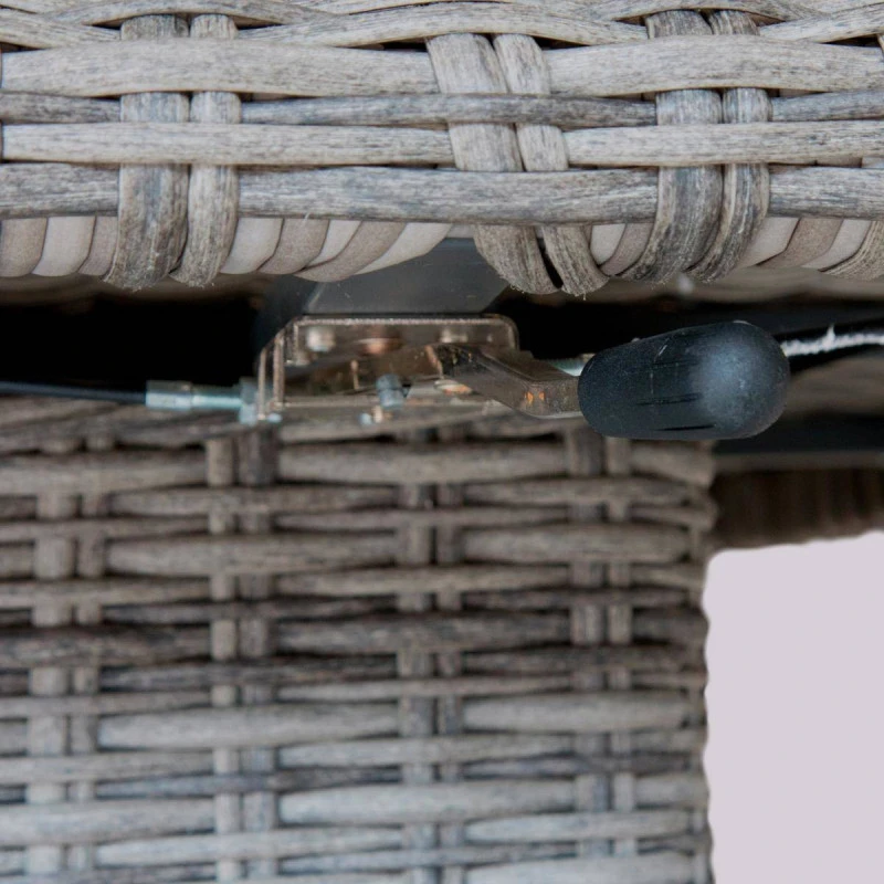 La table dispose d’une structure en rĂ©sine tressĂ©e synthĂ©tique spĂ©cialement conçue pour l’extĂ©rieur.