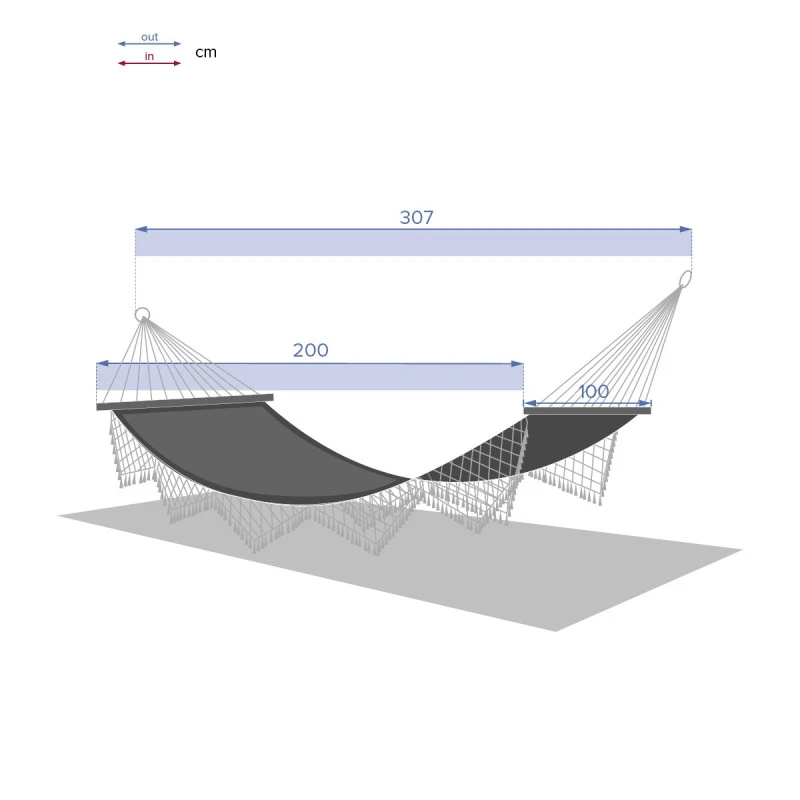 Longueur totale du produit avec les cordes 307 cm.Â