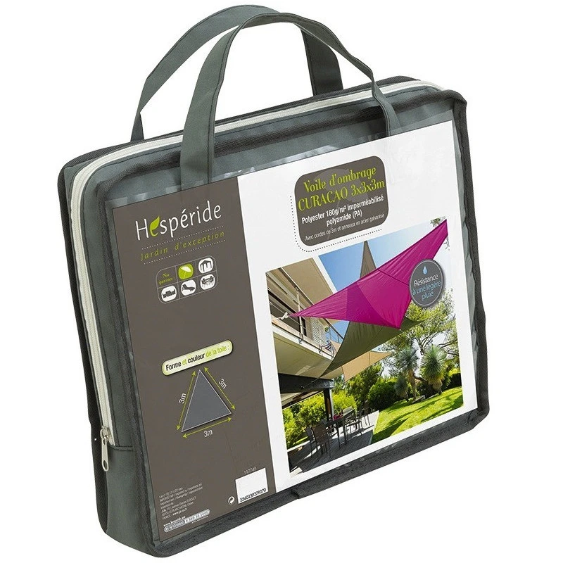 Pour vous crĂ©er un coin d’ombre dans votre extĂ©rieur, optez pour la toile solaire 3x3x3m Curacao coloris gris de la marque HespĂ©ride.