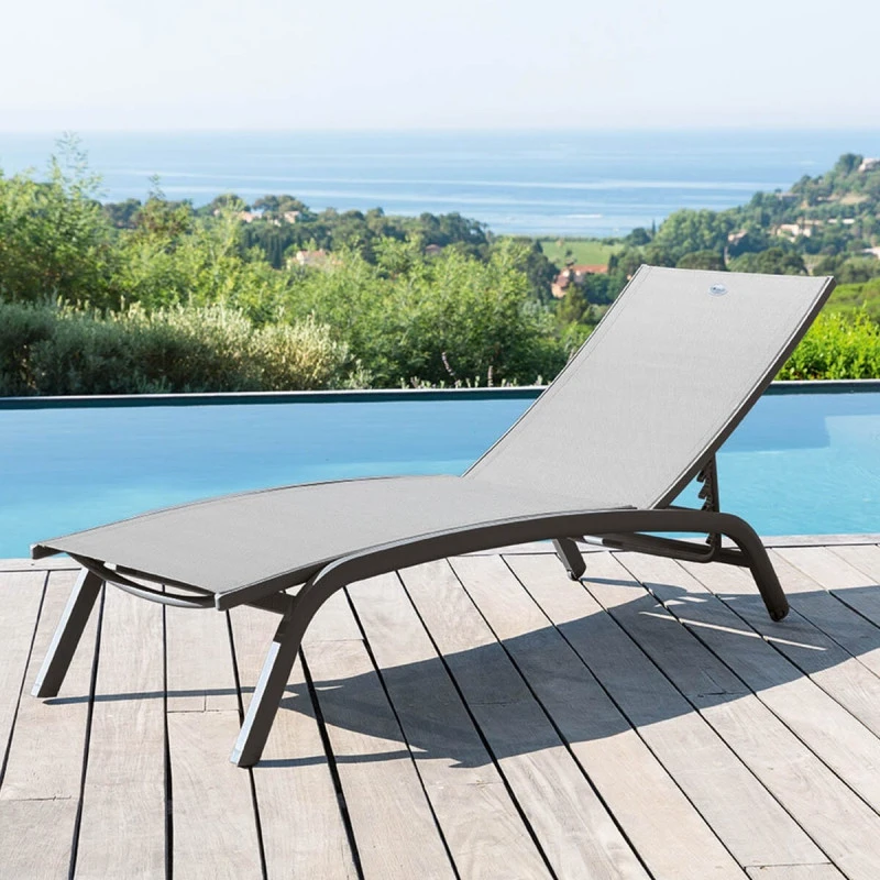Profitez du soleil avec ce transat Bonao coloris galet et graphite de la marque HespĂ©ride.Â